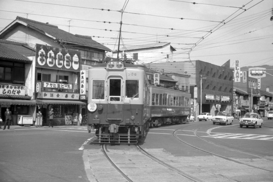 | 1970年3月、三条通にて撮影。このとき京津線はまだポール集電であった。 | |