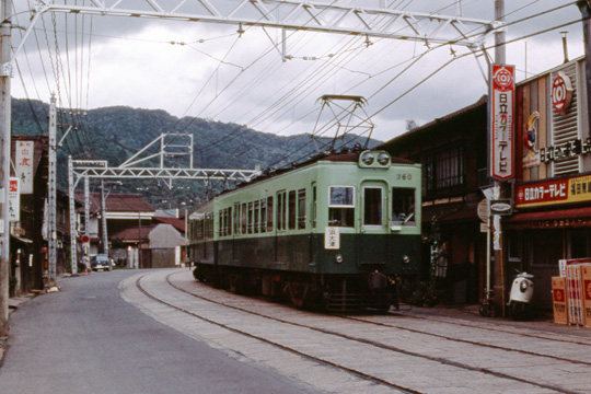 ポール集電が廃止される直前の京津線260型。浜大津にて1970年8月撮影。 |