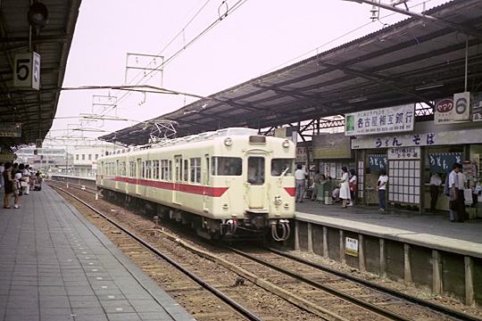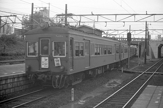 | 三河線の刈谷市−小垣江間にて、5500系の新鵜沼行き観光特急怪獣ジャンボ号。この区間,現在は高架になっている。1972年撮影。 | |