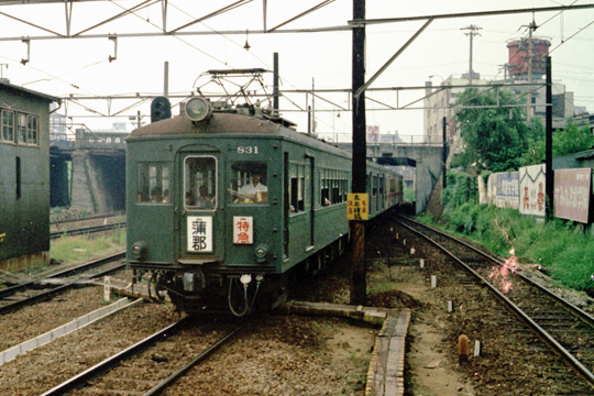 | 旧名岐鉄道が愛知電気鉄道と合併して名古屋鉄道となって最初の新車の850型流線型電車。新車の頃は西部線の押切町−新岐阜間を快走した.1973年、金山橋にて撮影。 | |
